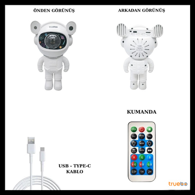 TRUEBO ASTROLIGHT Astronot Bluetooth Hoparlör Galaxy Duvar Tavan Gökyüzü Işık Efektli Kumandalı Projeksiyon Gece Lambası