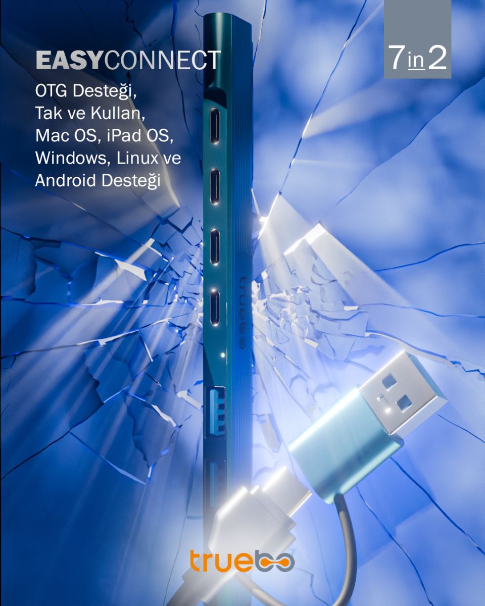 Modern çalışma ve yaşam ortamlarında, birden fazla cihazı aynı anda kullanma gerekliliği giderek artıyor. Bu noktada, Truebo EasyConnect devreye girerek USB-A ve Type-C çıkışına sahip cihazlarınızın bağlantı noktalarını genişletiyor ve size esnek, hızlı ve güvenilir bir çözüm sunuyor.